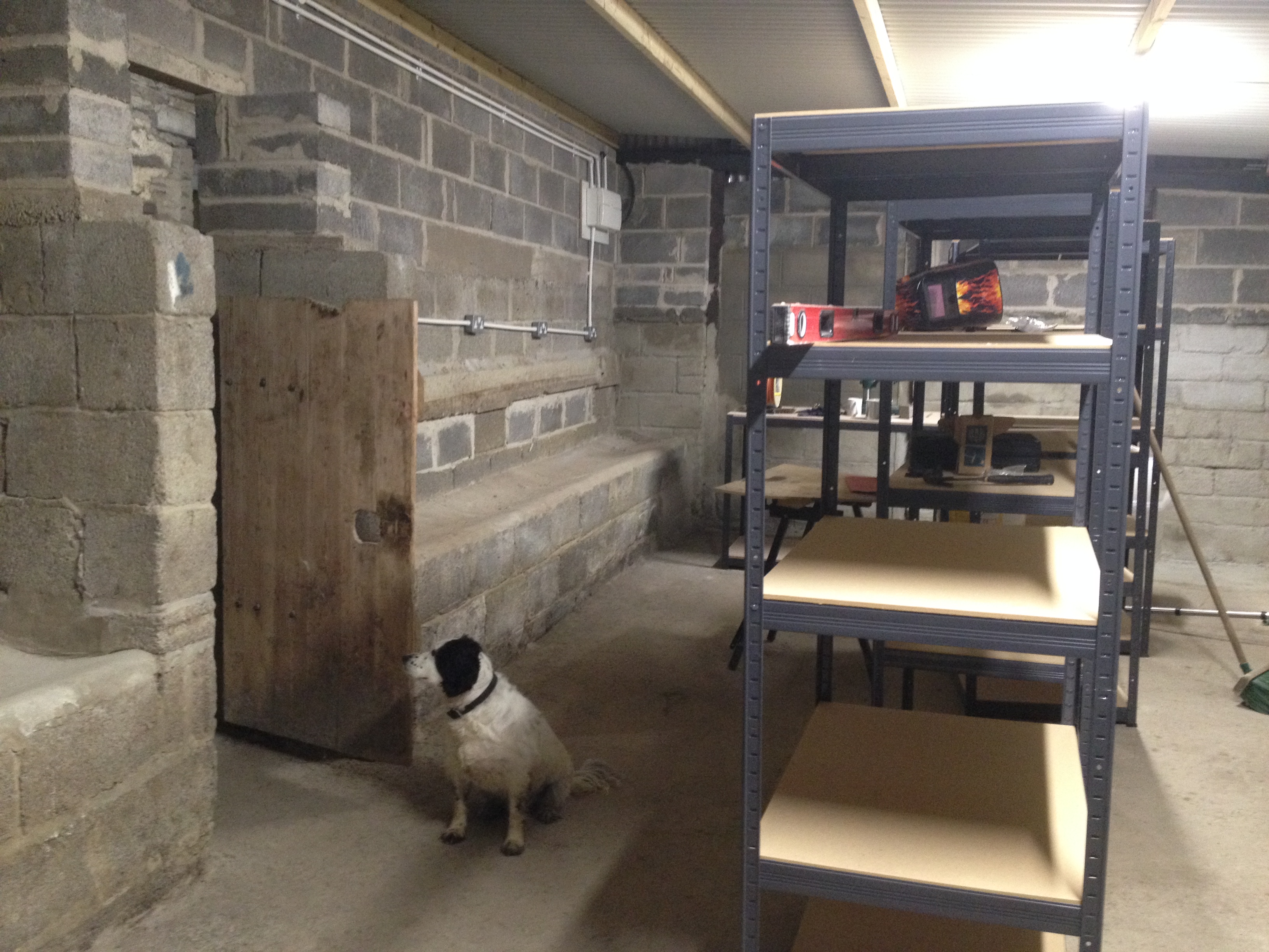 Today Himself is cementing the floor in places to level it for racking….